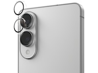 Ingen «Beklager!» med Hoops®! PanzerGlass® Hoops® kameralinsebeskytter beskytter kameralinsene dine mot støt som skaper riper, fall på steinharde gulv og det skrikende nøkkelkysset i lommen. De slanke optiske ringene er utstyrt med ripe- og støtbestandig glass og en svart aluminiumsramme som beskytter linsene dine i tillegg til at de ser flotte ut. Og hvis du er bekymret for bildeforvrengning, vær rolig: Hoops® påvirker ikke klarheten til linsene eller kvaliteten på bildene dine – de gir deg bare litt mer trygghet.