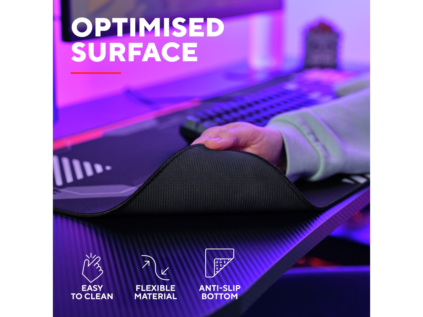 Du har en pult, ikke en skøytebane, så denne musematten, komplett med en gummiert antiskli bunn, sørger for at det ikke glir og sklir mens du spiller. Musematten trenger en oppfriskning? Det lett rengjørbare materialet lar deg enkelt fjerne støv og skitt ved å bare skylde den under vann.