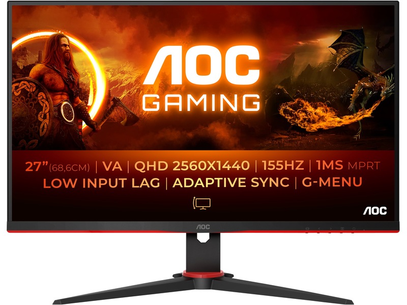 Integrert kabelstyring, Low Input Lag, Dial Point, Adaptive-Sync-teknologi, AOC Shadow Control, 3-sidet uten ramme, Low Blue Light-teknologi, AOC Game Color, Rammeteller, Crosshair Display, AOC Flicker-Free Technology