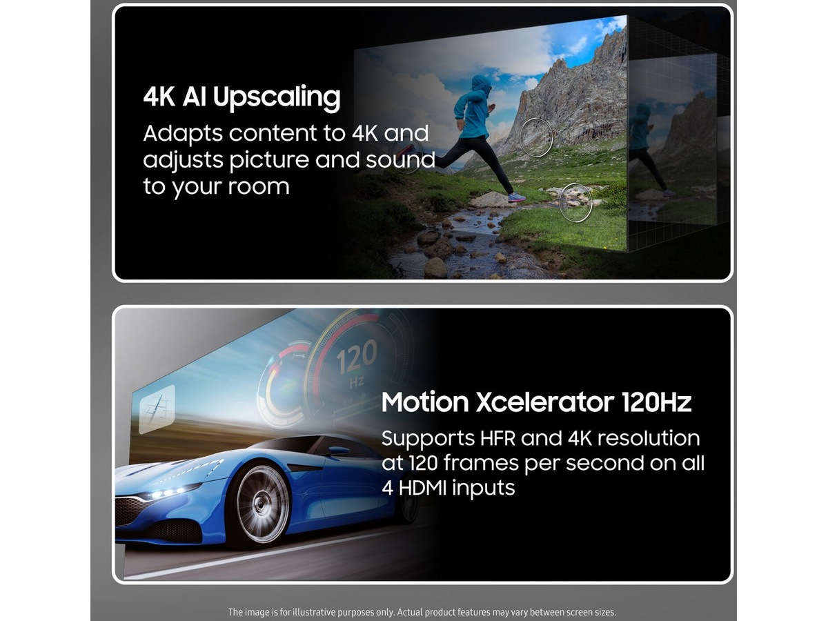 Kraftfull NQ4 AI Gen2-prosessor benytter AI-teknologi som tilpasser innholdet til 4K og justerer bilde og lyd etter rommet.