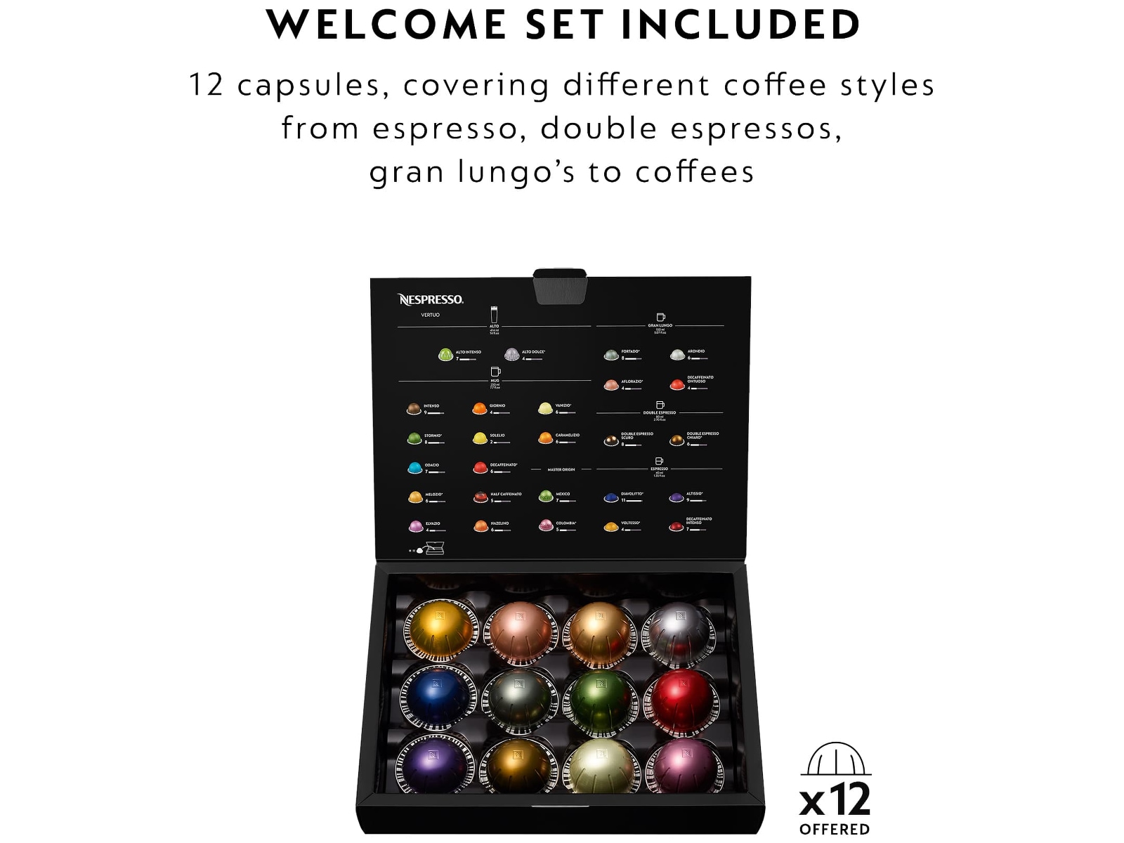 For å bevise at Vertuo Next vil strekke seg langt for å glede deg, er den tilgjengelig i et stort utvalg av farger. Med kromdetaljer vil den helt sikkert passe inn på ethvert kjøkken. For å glede planeten er den laget av 54 % resirkulert plast - den første i Nespresso sitt univers. For å optimalisere din kaffeopplevelse tar maskinen deg med til neste nivå – koble den til Wi-Fi og Bluetooth. Den vil kontinuerlig oppdatere seg og gjøre hverdagen enklere.