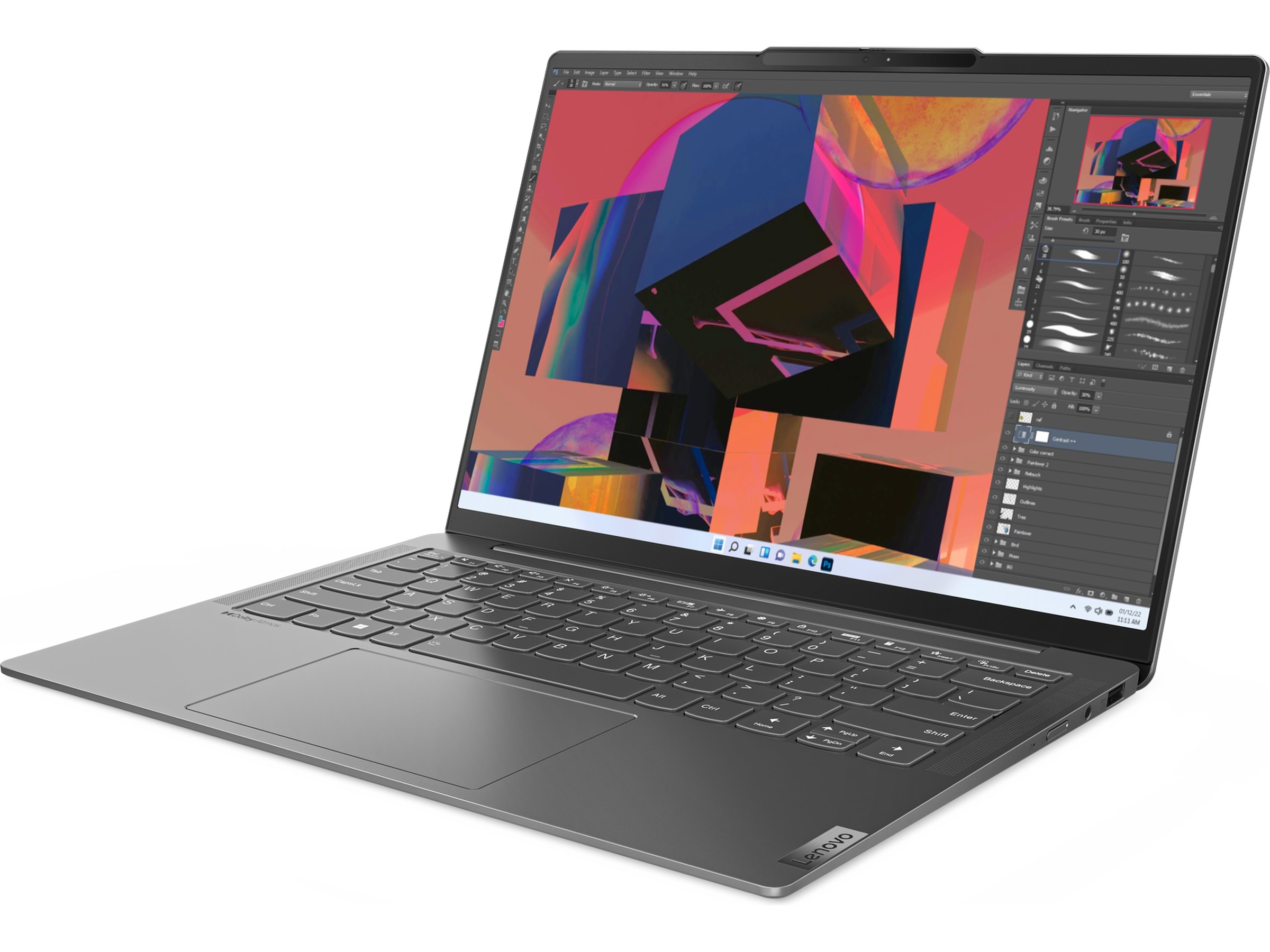 Den bærbare Yoga Slim 6i Gen 8 har Lenovo AI Engine+ som gjenkjenner dine behov. Dra nytte av forbedret ytelse og trådløs tilkobling mens du holder dataene og systemet trygt med adaptive smarte funksjoner som Smart Power, Self Healing og Integrert sikkerhet. I tillegg kan du starte dagen raskere med flip-to-start, og forbedre videosamtalene dine med funksjoner for støyreduksjon og bakgrunnsuskarphet.