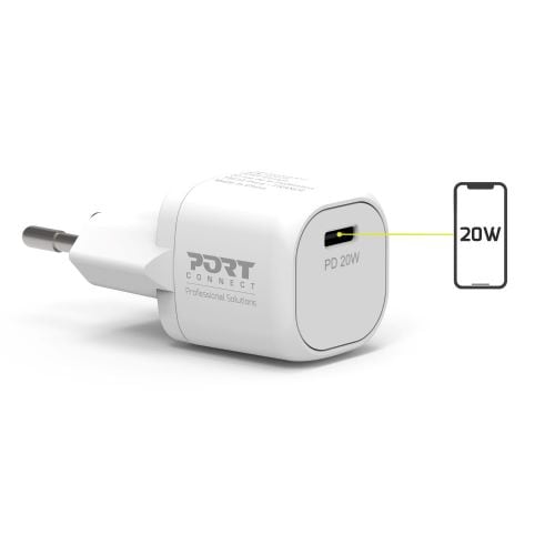 Port Designs Compact 20W USC-C Adapter Vegglader for USB-C-enheter USB-C Power DeliveryTM for ultra-rask lading opptil 20W For smarttelefoner, nettbrett, powerbanks og alle andre USB-C-enheter opptil 20W Lett å bære med i lommeformat Beskyttelse mot kortslutning og overspenning 10 år produsentgaranti PORT Connects 900030 vegglader er kompatibel med smarttelefoner, nettbrett, powerbanks og andre USB-C-enheter.