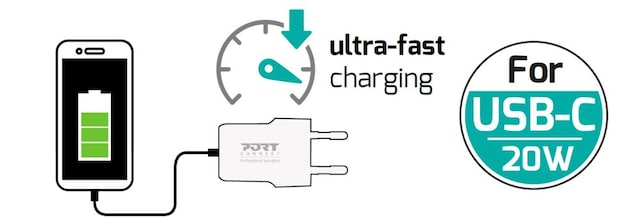 Den raske ladeprotokollen leverer opptil 20 W via USB-C Power Delivery™.