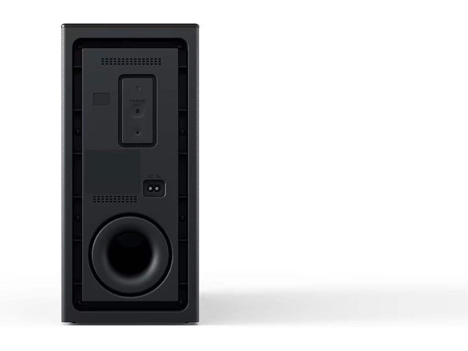 Høyttalerdetaljer Høyttaler - subbasshøyttaler - 220 watt - 10% THD - 3 ohm, Lydplanke - midtkanal - 40 watt - 10% THD - 4 ohm, Lydplanke - frontkanal x 2 - 80 watt - 10% THD - 4 ohm