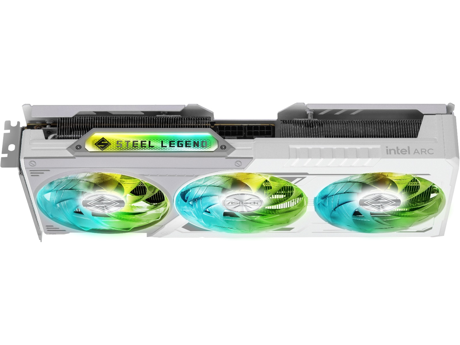 Videoadapterfunksjoner Triple Fan Design, 0dB Technology, Nanotermisk pasta, Mattsvart PCB, Nikkelbelagt kobberbunn, LED av/på-bryter, High Density Glass Fabric PCB, 160 Intel XMX-motorer, Metallbakplate, ARGB-stifthode, DrMOS, Premium Power Choke, Polychrome SYNC, 2,6-spors Fan Cooler, 2oz kobber PCB, Intel Xe2 HPG Architecture, Intel Xe Matrix eXtensions (XMX), Striped Ring Fan, Super Alloy Power-teknologi, Luftavvisende finne, Japanese SP-Cap, Intel Xe Super Sampling 2 (XeSS 2), ARGB Lighting, Ultrapassbart varmerør