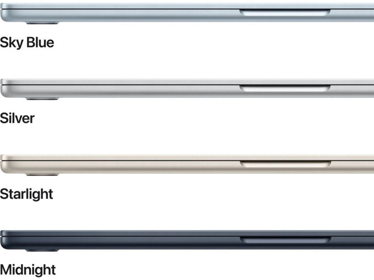 OMFATTENDE TILKOBLINGSMULIGHETER – MacBook Air er utstyrt med to Thunderbolt 4-porter, en MagSafe-ladeport, hodetelefonuttak, wifi 6E og Bluetooth 5.3.(3) Den støtter tilkobling av opptil to eksterne skjermer.
