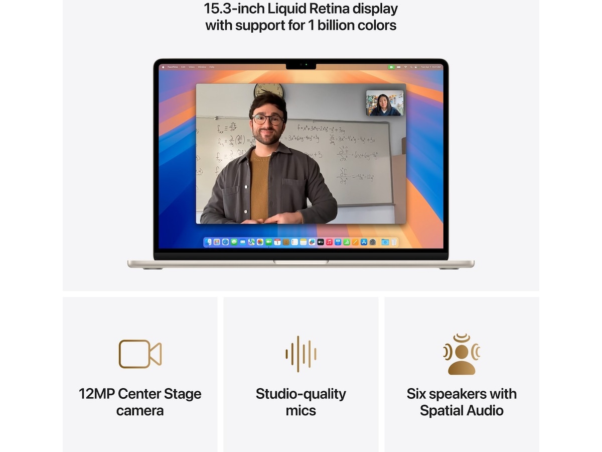 KRYSTALLKLART DISPLAY – Den 15,3-tommers Liquid Retina-skjermen støtter én milliard farger.(2) Visuelt innhold fremstår med fremragende kontrast og presise detaljer, mens tekst gjengis med optimal skarphet.