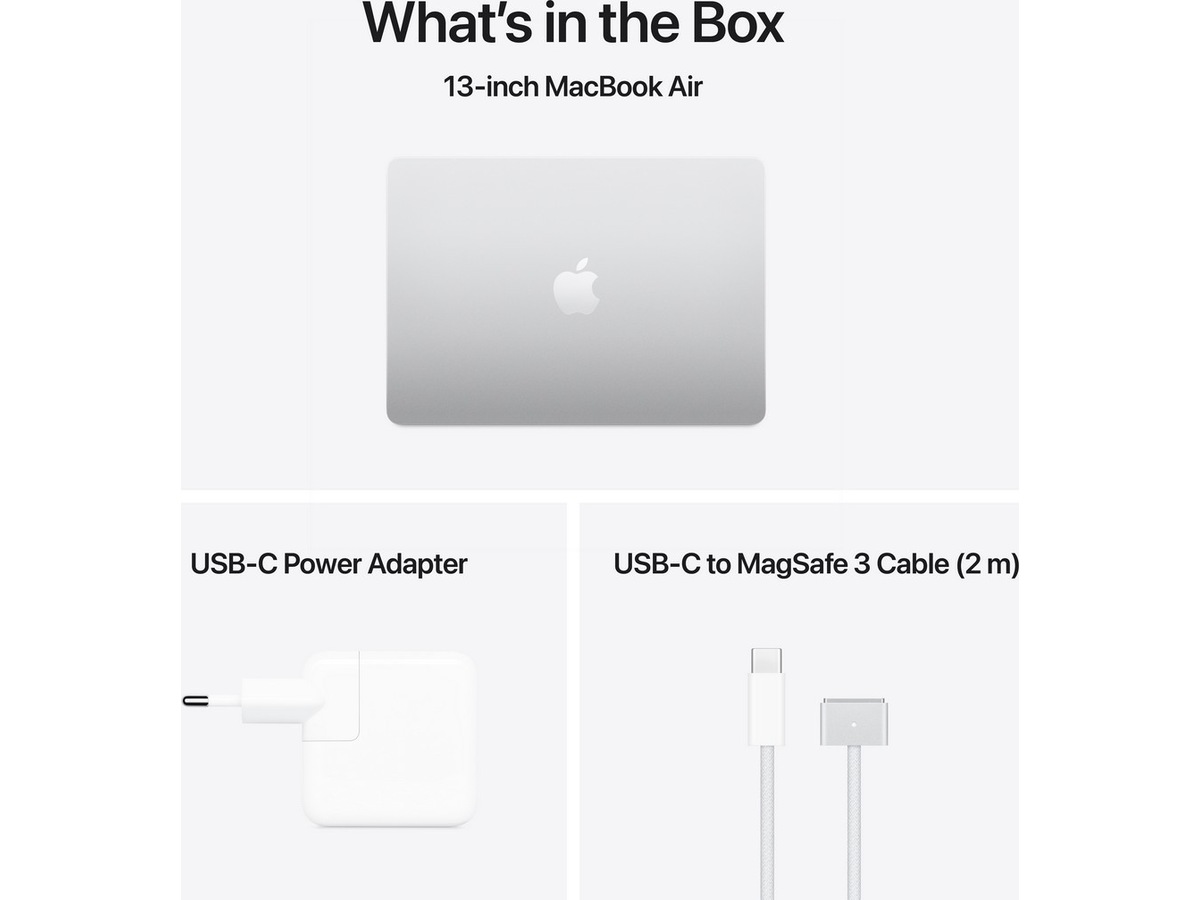 Inkludert tilbehør USB-C til MagSafe 3-ladekabel (2 m), USB-C kompakt strømadapter med to porter