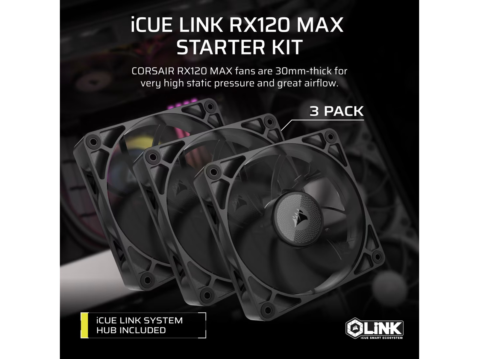 Corsair iCUE LINK RX120 MAX Vifte 3pk (sort) -B-Grade