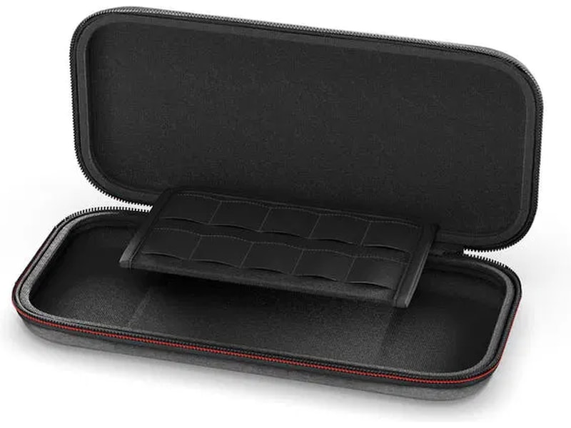 Ta Nintendo Switch™ 2-systemet ditt med på alle dine eventyr med denne slanke vesken som ikke går på bekostning av beskyttelse av konsollen og har lagringsplass for opptil 10 spillkort.