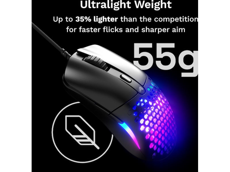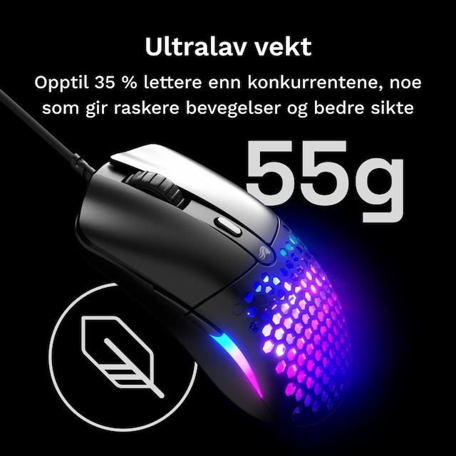 Opptil 35 % lettere enn konkurrentene, takket være et bikubeskall som reduserer vekt uten å gå på bekostning av komfort eller holdbarhet. Du får raskere bevegelser og problemfri kontroll i raske spill.