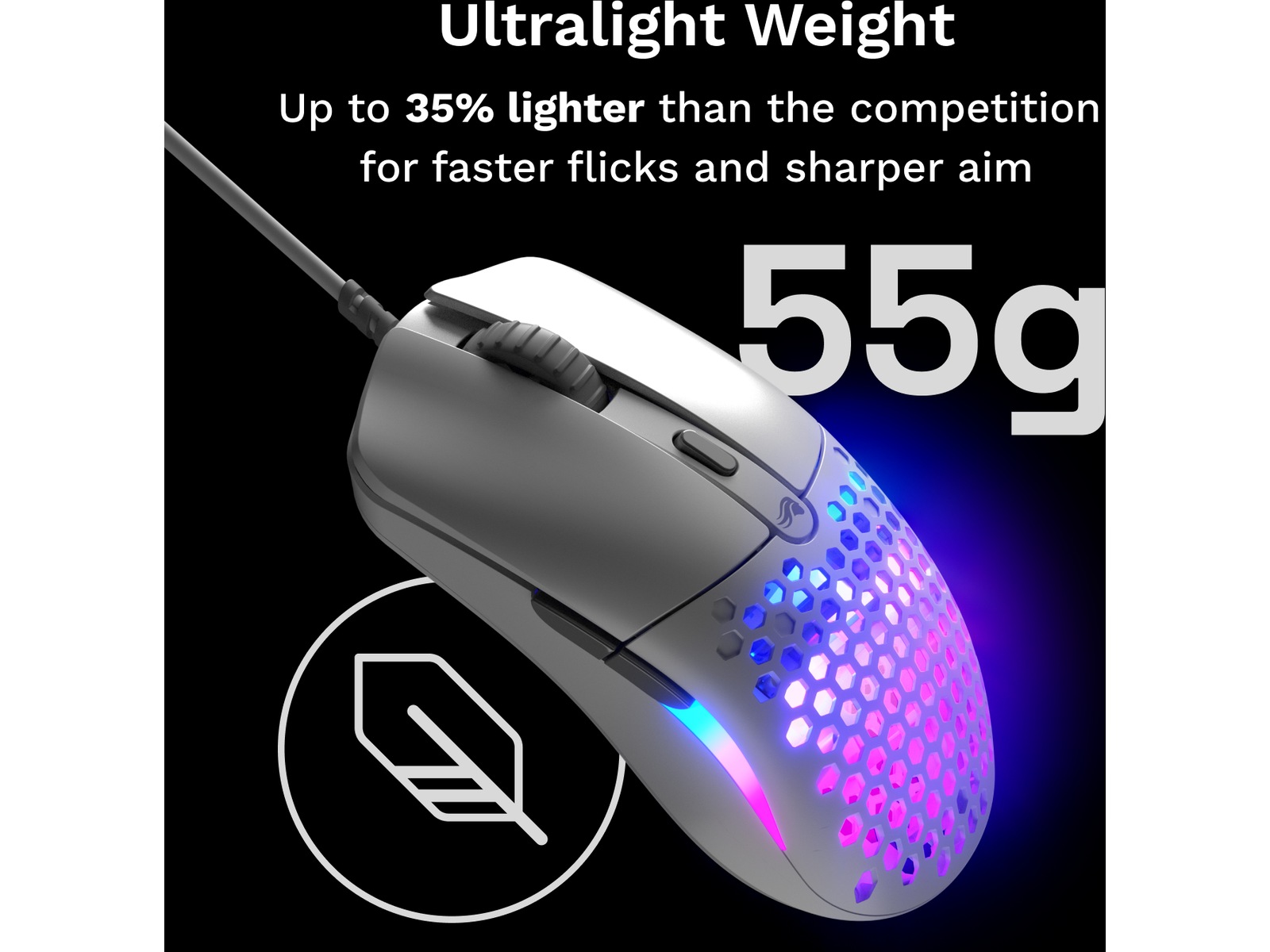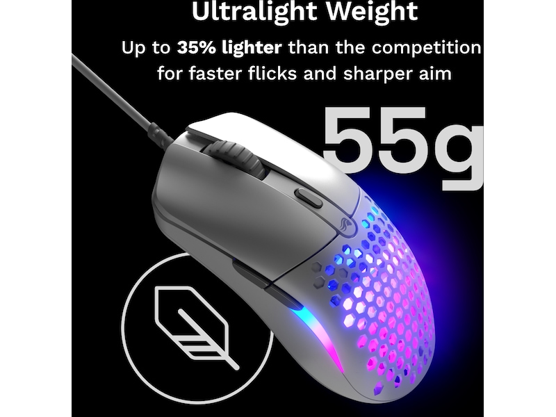 Opptil 35 % lettere enn konkurrentene, takket være et bikubeskall som reduserer vekt uten å gå på bekostning av komfort eller holdbarhet. Du får raskere bevegelser og problemfri kontroll i raske spill.