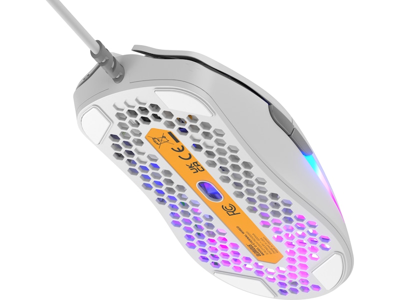RGB-lysene med to soner lyser opp musens sidepaneler med en fargerik glød. Tilpass den med kjappe knappesnarveier eller finjuster til perfeksjon med Glorious CORE-programvaren.
