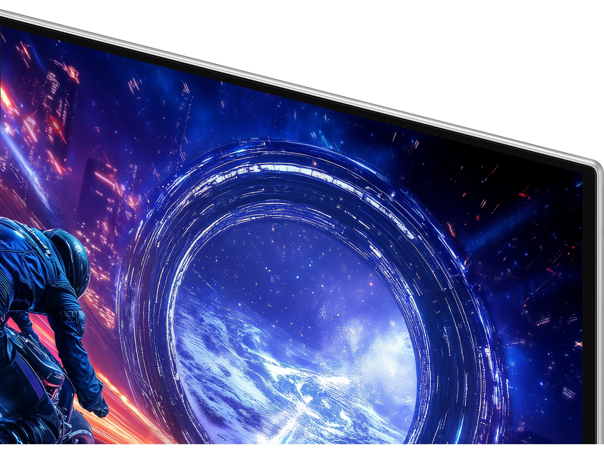 Opplev enestående realisme i spillene dine. Samsung QD-OLED tilbyr forbedret lysstyrke og et bredt spekter av farger, noe som gjør scenene skarpe og levende i QHD-oppløsning.