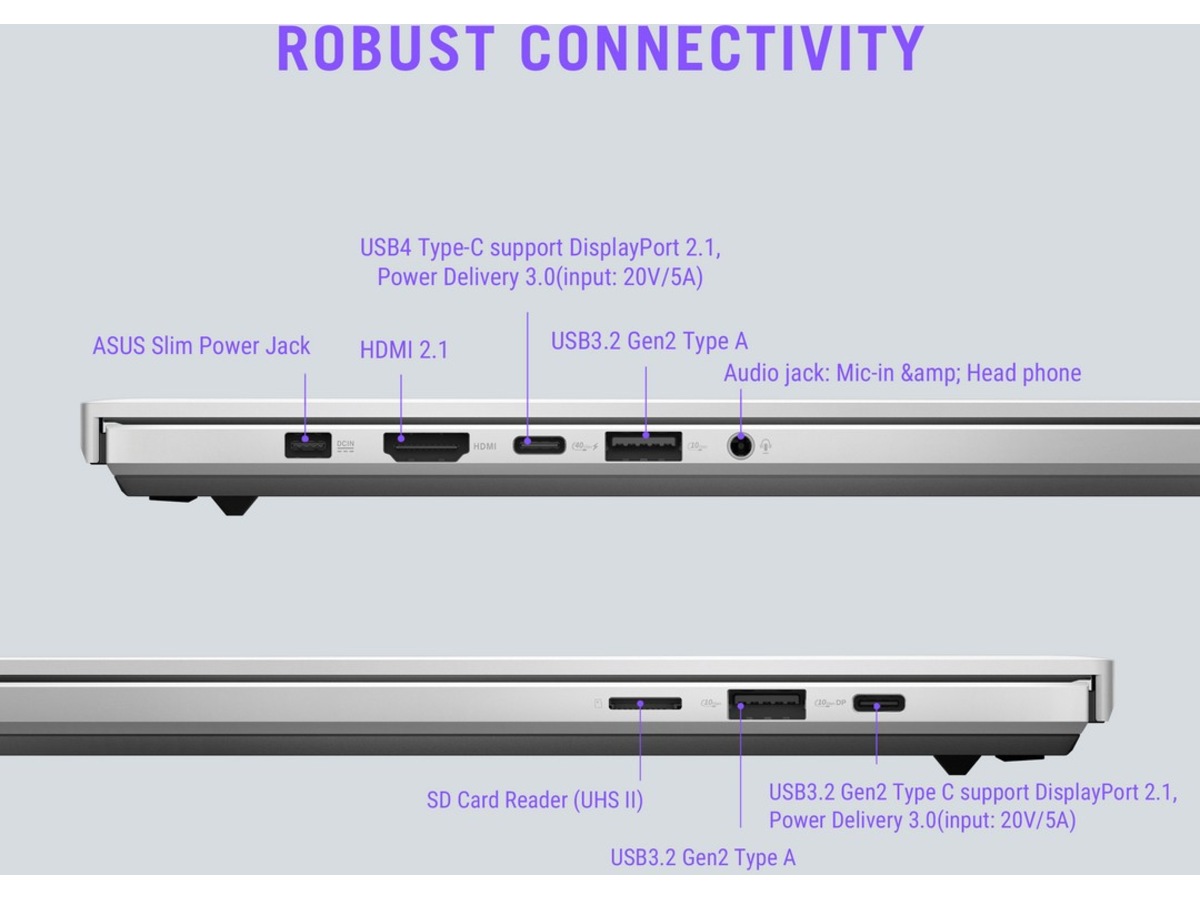 Grensesnittdetaljer USB4/DisplayPort (Power Delivery), 2 x USB 3.2 Gen 2, HDMI, Hodetelefons/mikrofons-kombinasjonsjakk, USB-C 3.2 Gen 2 (supports DisplayPort Alt Mode) (Power Delivery)