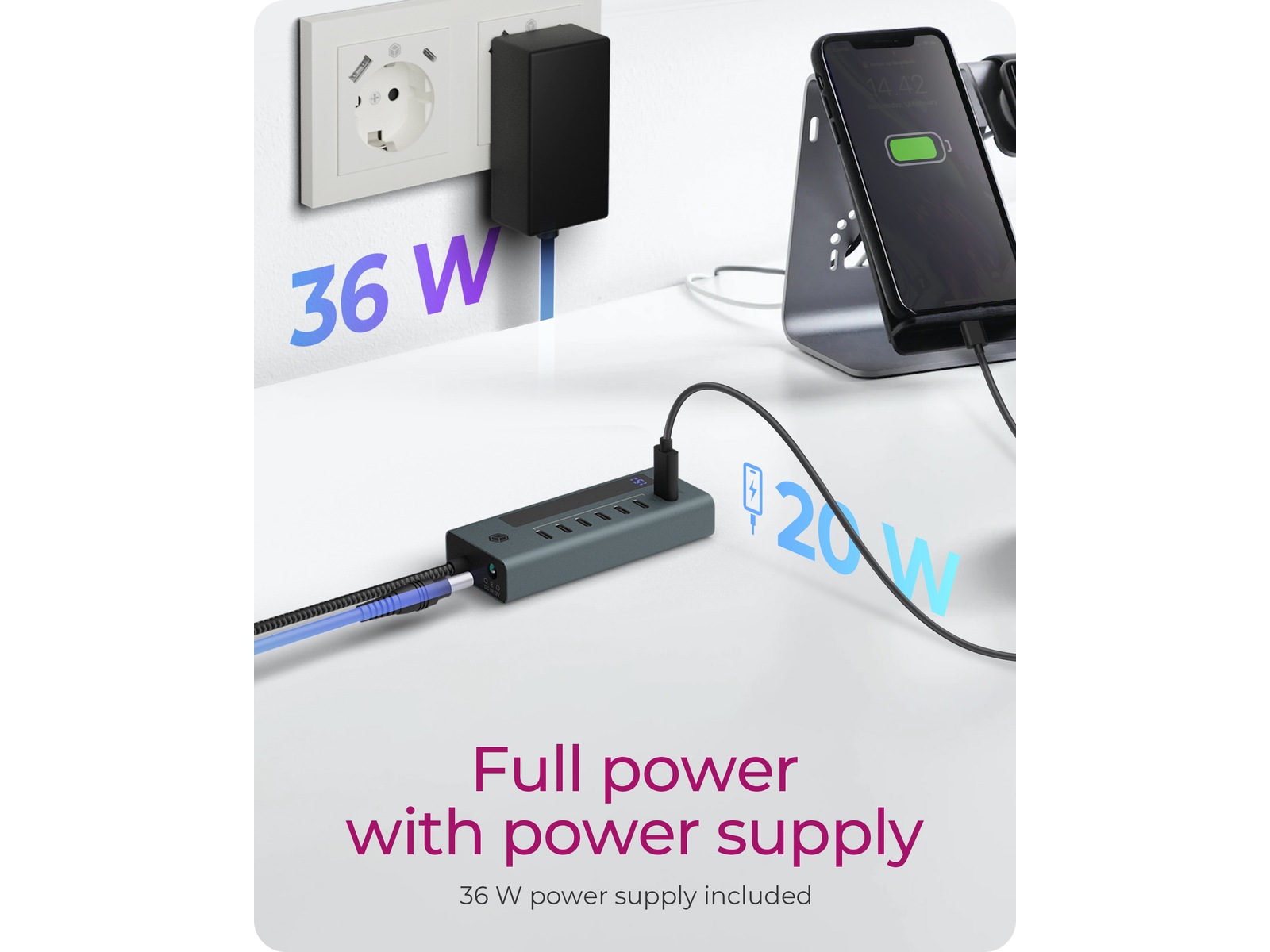 Grensesnitt 6 x USB-C, 1 x USB-C Strømlevering (20W)