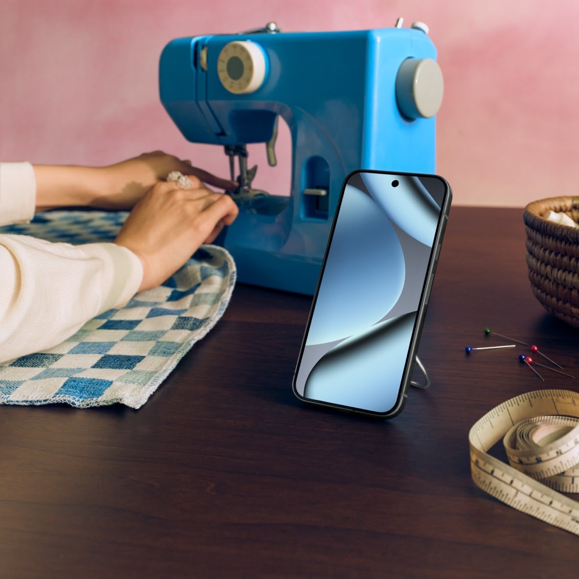 Den polerte metallringen matcher de stilrene metalldetaljene på Pixel 10-serien. Den ultramyke mikrofiberen på innsiden gjør det enkelt å rotere for perfekt vinkel. Og den kan vippes opp – eller lukkes flatt – for enkel bruk på farten.