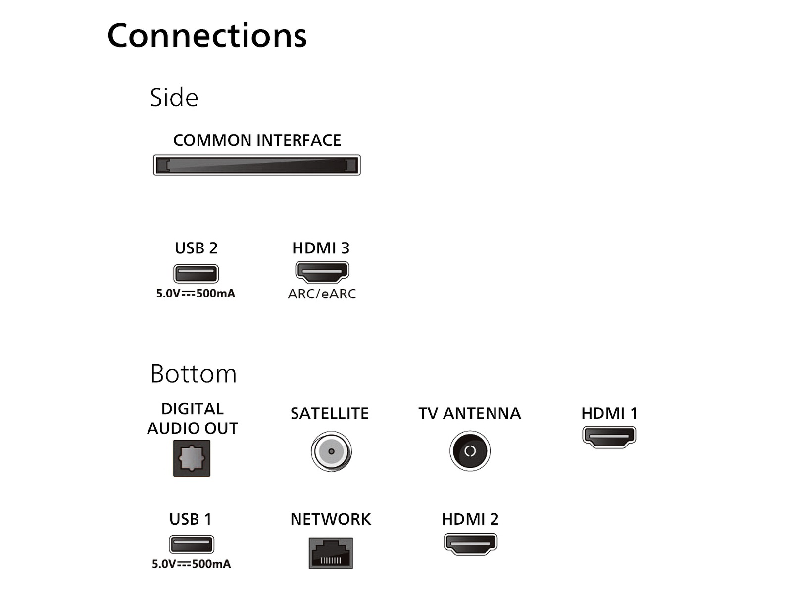 HDMI - side, LAN - bunn, USB - bunn, USB - side, Digital lydutgang (optisk) - bunn, 2 x HDMI - bunn