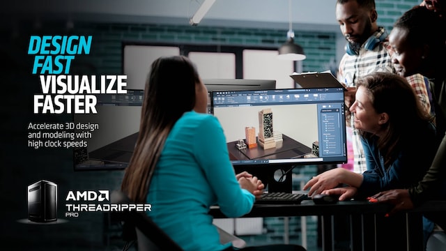 Med høye klokkehastigheter, opptil 96 kjerner og minneutvidelsesmuligheter, leverer AMD Ryzen™ Threadripper PRO-prosessorer den beregningskraften som trengs for å håndtere enorme datasett, skape enorme fotorealistiske bilder, og få godkjenning fra interessenter når det virkelig gjelder.