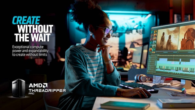 Visjonen din fortjener ubegrenset kraft. Fra virtuell produksjon til AI-drevet VFX, AMD Threadripper™ PRO-prosessorer leverer den flertrådede styrken og høyfrekvente hastigheten de mest ambisiøse prosjektene dine krever.