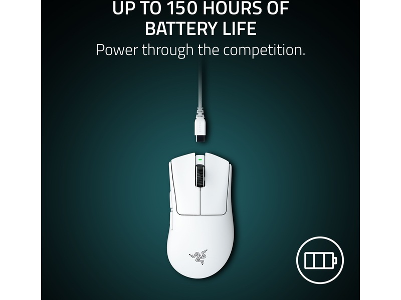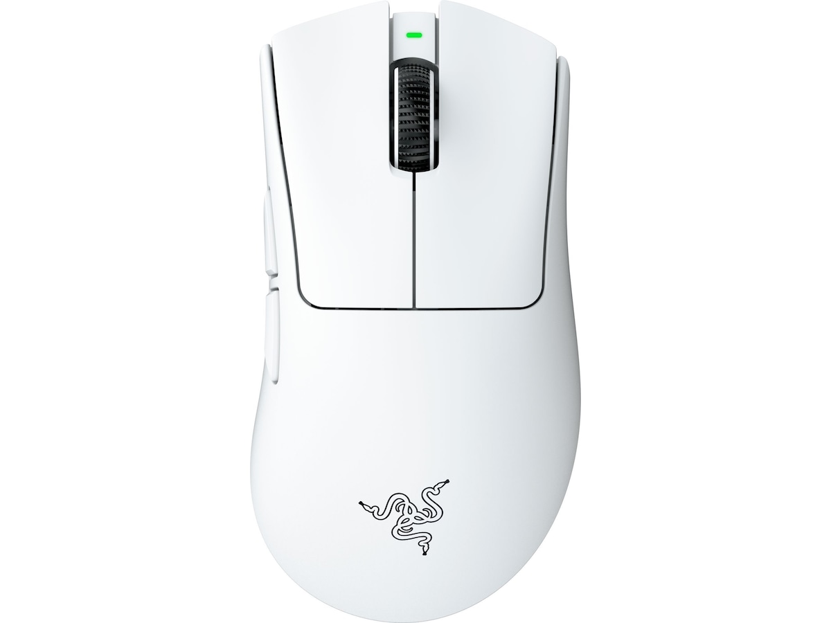 Press dine grenser med Razer DeathAdder V4 Pro—en ultralett trådløs ergonomisk e-sport-mus laget for proffer. Med en vekt på bare 56 g/57 g er den prisbelønte formen omkonstruert med vektoptimaliseringer og en myk berøringsfinish for raskere, mer kontrollert bevegelse. Føl forskjellen med Razer™ HyperSpeed Wireless Gen-2—et ultrastabilt trådløst system som er over 63% mer effektivt (under standard testforhold) med 37% lavere ventetid enn tidligere generasjon. Opplev hyperresponsive input med Razer™ HyperPolling 8K Hz, med opptil 8000 Hz i både kabel- og trådløs modus. Dominer med Razers første optiske rullehjul for e-sport—3x mer holdbart med presis, taktil kontroll. Sikt med selvtillit med Razer™ Focus Pro 45K Optical Sensor Gen-2, som tilbyr 45,000 DPI, 900 IPS, 85 G akselerasjon, 99.8% oppløsningsnøyaktighet, og dyptilpasning. Nyt opptil 150 timers batteritid ved 1000 Hz. Støttet av Razer™ Optical Mouse Switches Gen-4, opplev forbedret klikkfølelse og en klikklivslengde på 100 millioner. Autoswitchende pollhastighet optimerer ytelse og batteritid.