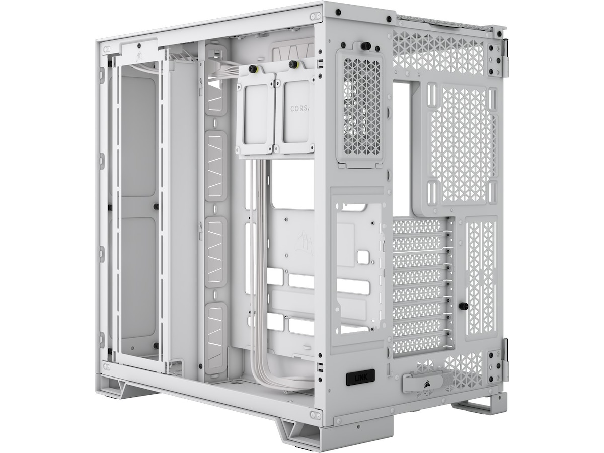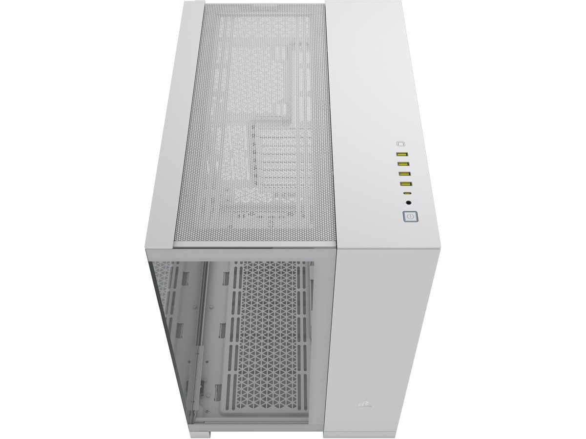 Sidepanel av temperert glass, Glass frontpanel, Dobbeltkammeroppsett, Bunnstøvfilter, Masketopp