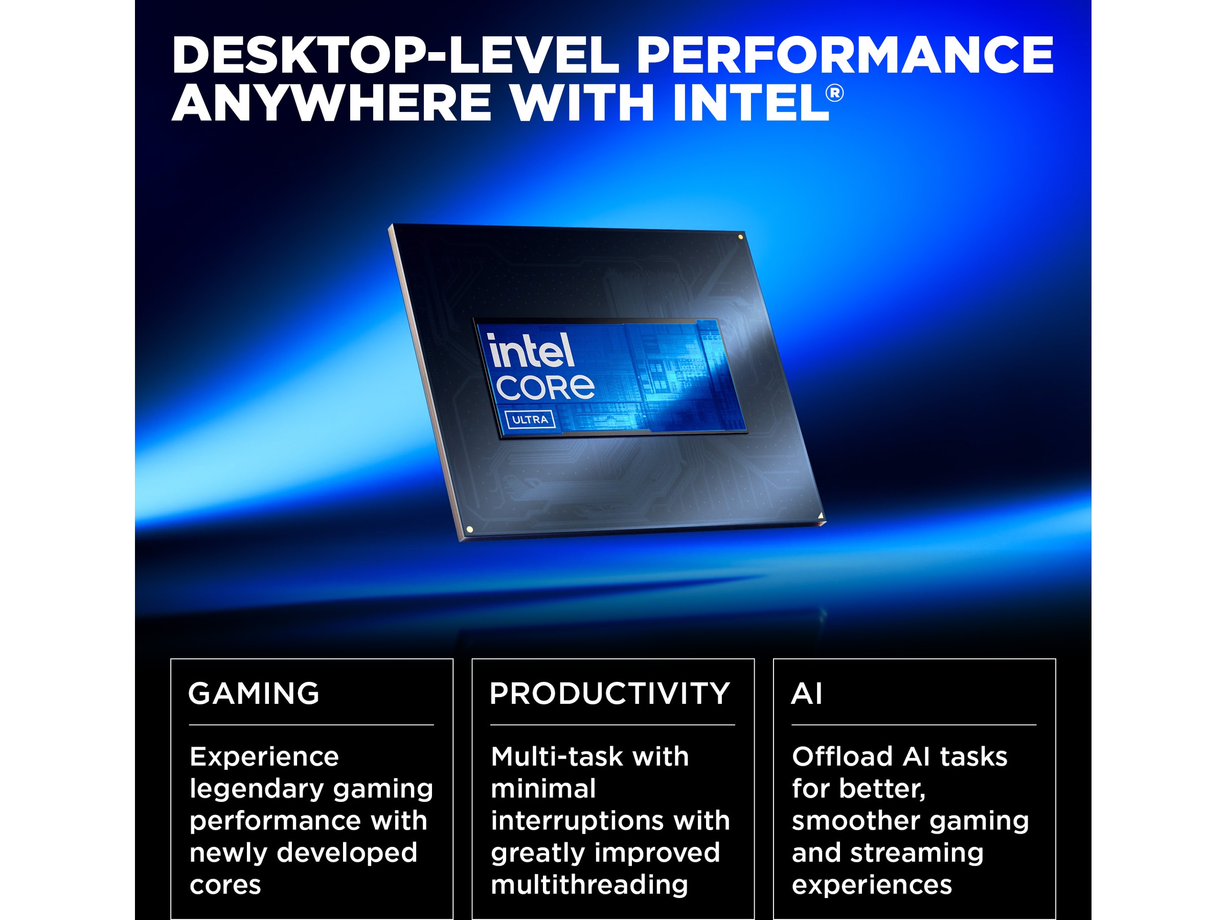 Gass mindre og bær mer med de nyeste Intel® Core™ Ultra CPU-ene og neste generasjons NVIDIA® RTX™-grafikk.