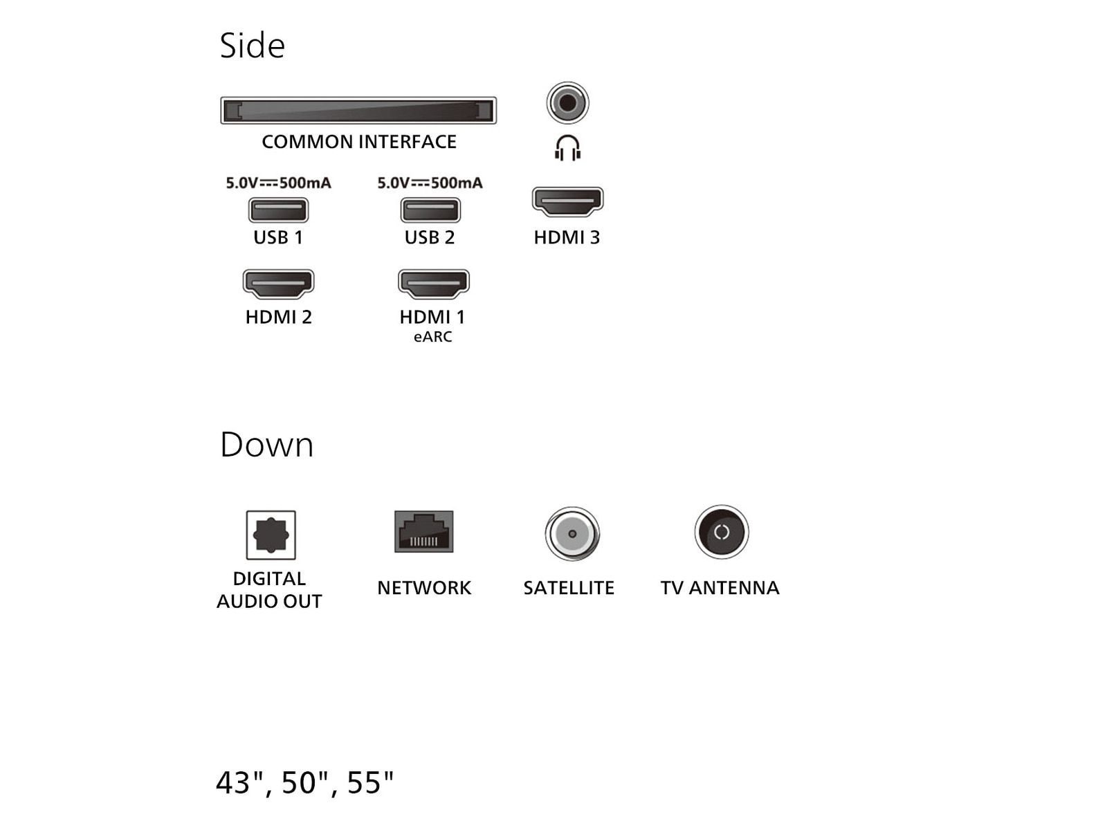 Digital lydutgang (optisk) - bunn, 3 x HDMI - side, 2 x USB - side, LAN - bunn, Lydutlinje / hodetelefoner - side