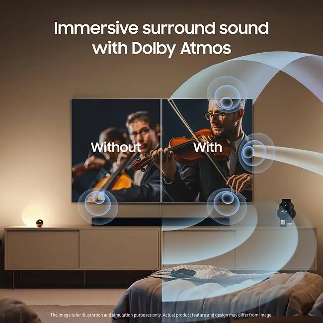 Andre egenskaper 360 Audio, Adaptive Sound Pro, Far-Field Voice Interaction, Audio Pre-selection Descriptor, Object Tracking Sound Lite, Enhanced Audio Return Channel (eARC), Q-Symphony, Active Voice Amplifier Pro
