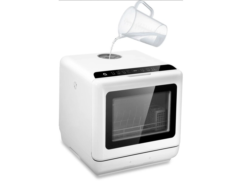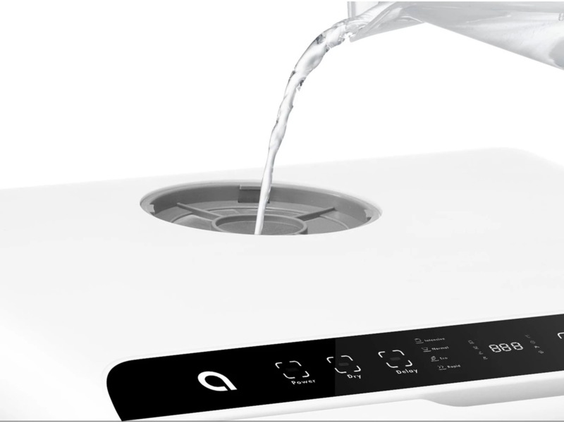 Benkeoppvaskmaskinen har en innebygd vanntank som kan fylles manuelt før vask. Dette betyr at du ikke trenger å ha maskinen konstant koblet til en vannkilde. I stedet kan du ganske enkelt fylle tanken før hver vask og la maskinen kvitte seg med vannet under vaskesyklusen. Merk at tømmingen fortsatt er kontinuerlig og at et avløpsrør må føres til avløpet ditt, enten direkte ned i sluket eller via vasken.