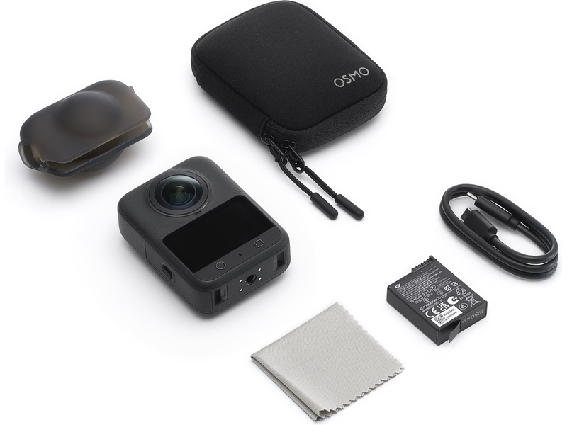 Linsebeskytter, Beskyttelsespung, Rengjøringsklut, USB-C-kabel (0.5 m)