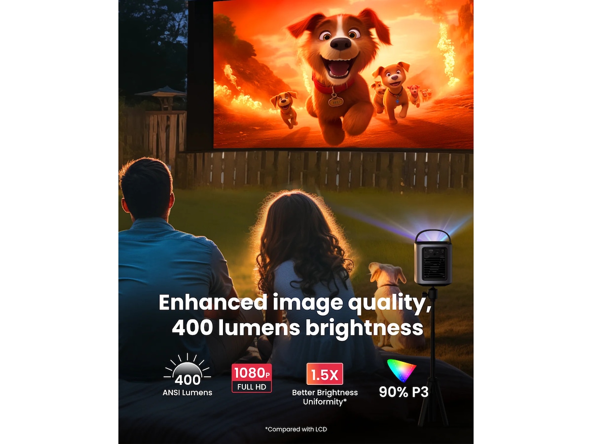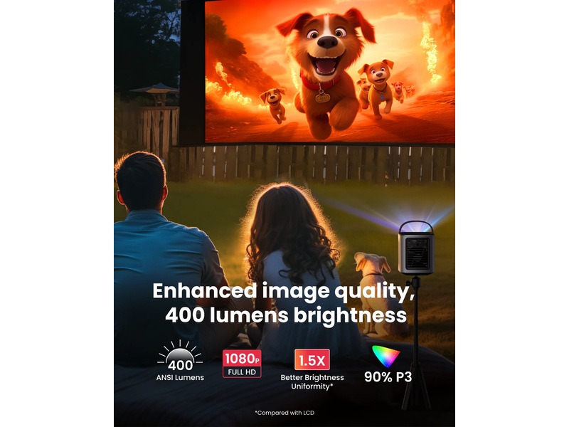 Imponerende skjerm: Nyt en virkelig kinoopplevelse med rik detaljer og høy klarhet takket være 1080p HDR-skjermen og 400 ANSI Lumens lysstyrke.