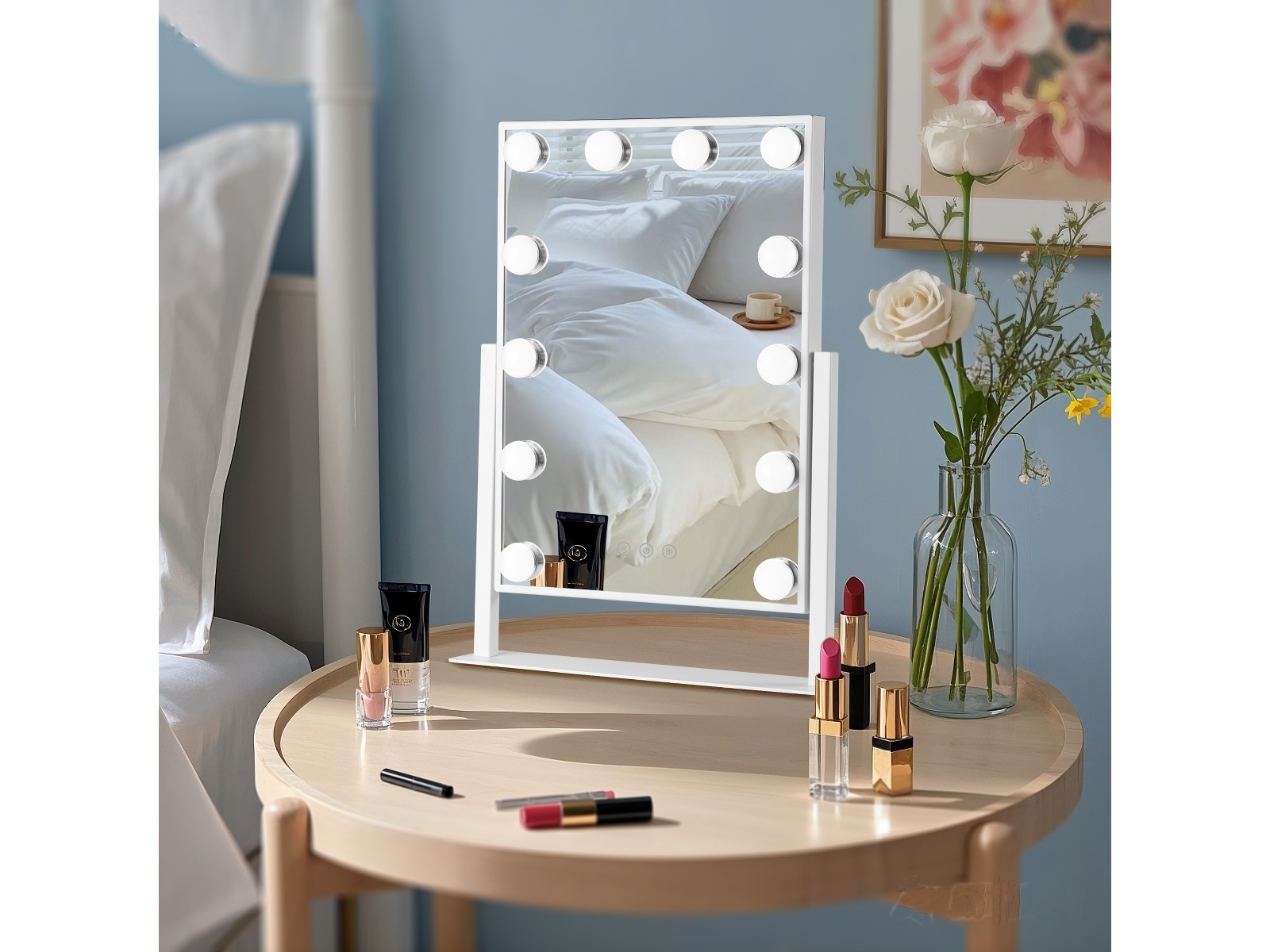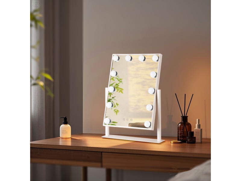 Denne sminkespeilen er utstyrt med en smart touchsensor som lar deg velge mellom tre forskjellige lysinnstillinger. Uansett om du ønsker varm, naturlig eller kald belysning, kan du enkelt justere lysstyrken for å imøtekomme dine behov. Det gjør sminke og hudpleierutiner både enklere og mer presise.