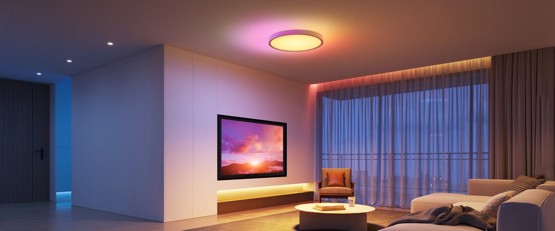 Sett enkelt stemningen for middagsfester, filmkvelder eller avslapning med et stort utvalg forhåndsinnstilte scener.
