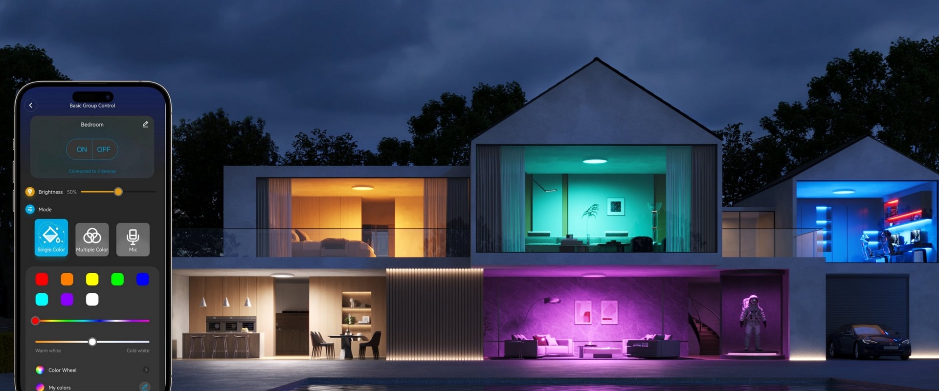 Millioner av livlige farger og varmt eller kaldt hvitt lys å velge mellom, samt mulighet til å lage egne animasjoner.
