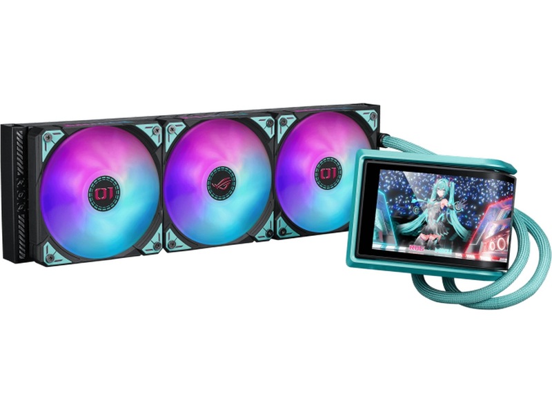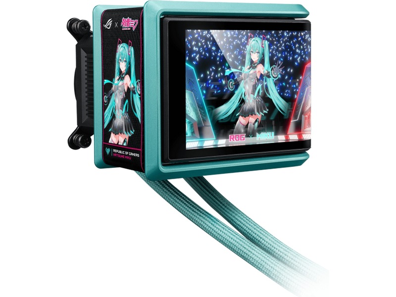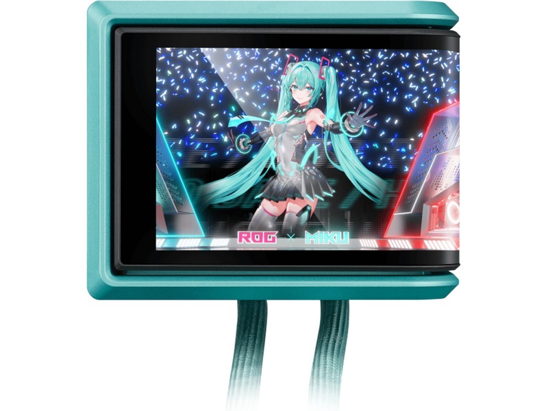 ROG Ryuo IV 360 ARGB Hatsune Miku Edition er utstyrt med en 6,67-tommers AMOLED-skjerm, som gir intuitiv kontroll via dedikert programvare for sømløs visning av 3D-videoer, eget innhold eller sanntids maskinvaredata. Det innovative buede skjermdesignet bygger bro mellom virtuelle og fysiske omgivelser. Den effektive pumpen og ROG ARGB-viftene gir pålitelig kjøleytelse for CPU-er, inkludert AMD Ryzen™ 9000-serien og Intel® Core™ Ultra-prosessorer.