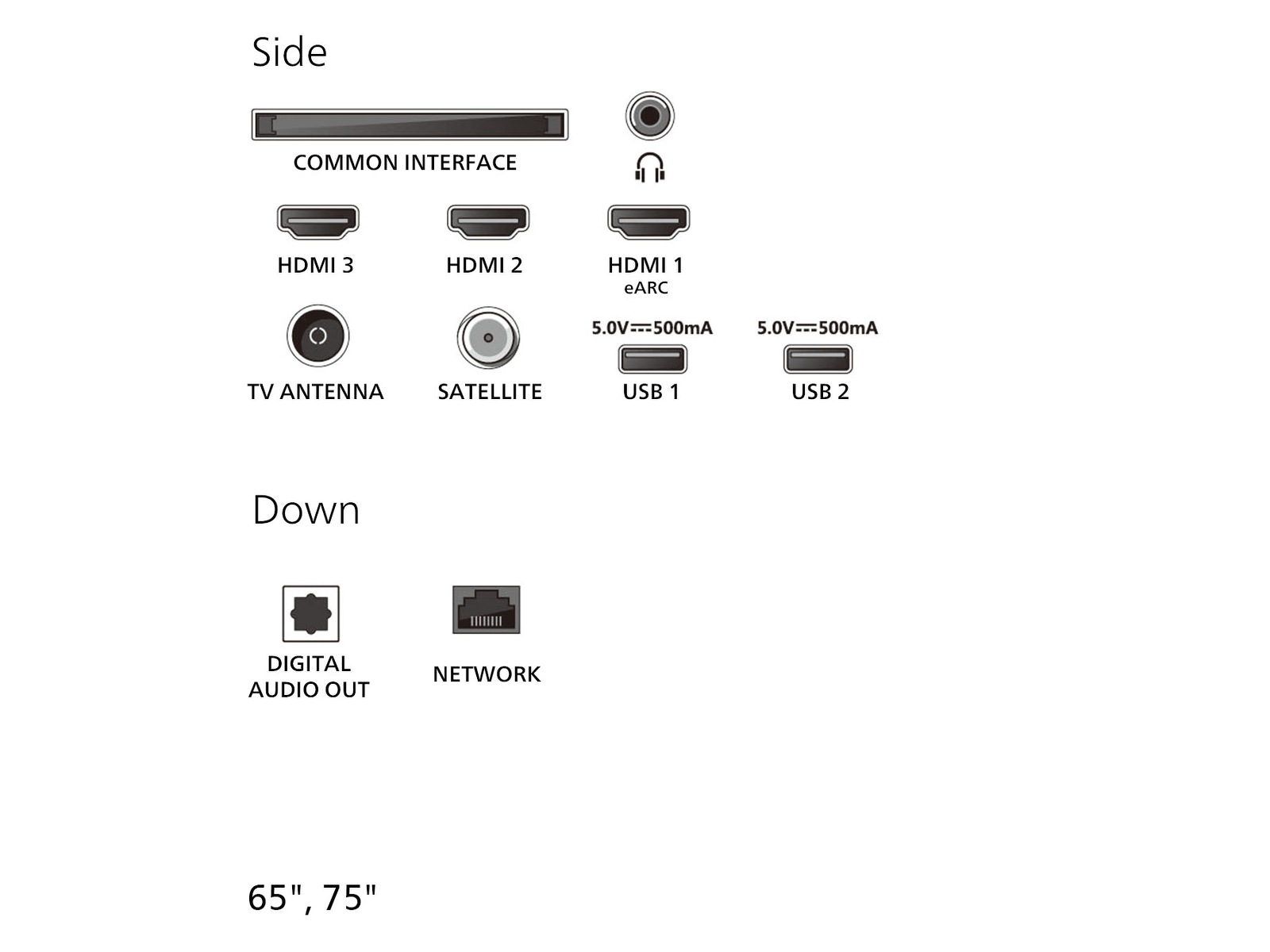LAN - bunn, Lydutlinje / hodetelefoner - side, 2 x USB - side, Digital lydutgang (optisk) - bunn, 3 x HDMI - side