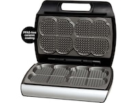 Dette vaffeljernet er laget av rustfritt stål av høyeste kvalitet med et overlegent slippbelegg, som sikrer enkel frigjøring av vafler og forenkler rengjøringen. Den kraftige effekten på 1600W gir jevn varmefordeling over hele stekeflaten, og tilbereder effektivt tykkere røre samtidig som det gir en herlig sprø overflate. Apparatet oppnår optimal temperatur på omtrent 7 minutter og lager deretter vafler på bare 2 minutter. For effektiv oppbevaring kan vaffeljernet plasseres vertikalt, noe som minimerer plassbehovet i skapet.
