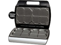 Vaffeljernet er laget av førsteklasses rustfritt stål med en høyeffektiv non-stick-belegg, som sikrer enkel frigjøring av maten og forenklet rengjøring. Det robuste 1600W varmeelementet gir jevn temperaturfordeling over hele stekeflaten, og produserer effektivt tykkere vafler med en perfekt sprø utside. Enheten oppnår driftstemperatur på ca. 7 minutter og lager deretter vafler på ca. 2 minutter. For effektiv oppbevaring kan vaffeljernet plasseres vertikalt, noe som minimerer behovet for skapplass.