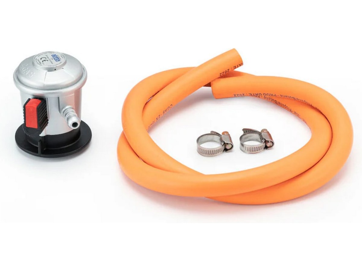 En 1,2 meter gasslange og CGAS gassregulator, type C21, for sikker og kompatibel bruk