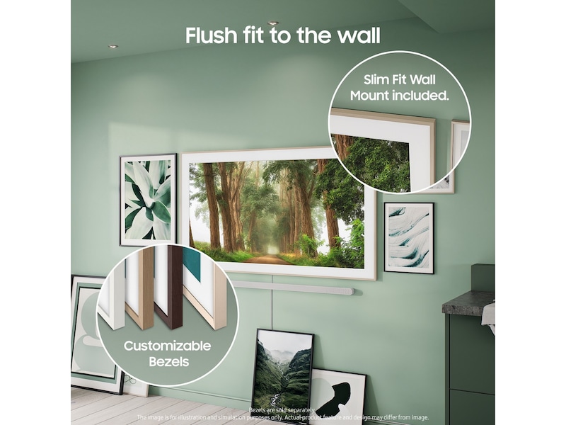 The Frame har en slank profil som gjør det mulig å montere TV-en nesten innfelt i veggen, slik at den fremstår som et autentisk maleri.