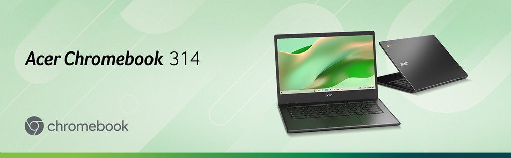Forbedre produktiviteten med Acer Chromebook 314 – en Chromebook for hverdagsbruk utstyrt med en rask Intel® Celeron® N4500-prosessor og en klar 14" HD-skjerm med antirefleks, i en lett design på kun 1,5 kg. Chromebooken har HD-kamera og rask Wi‑Fi‑tilkobling som sikrer at du holder deg produktiv gjennom dagen.