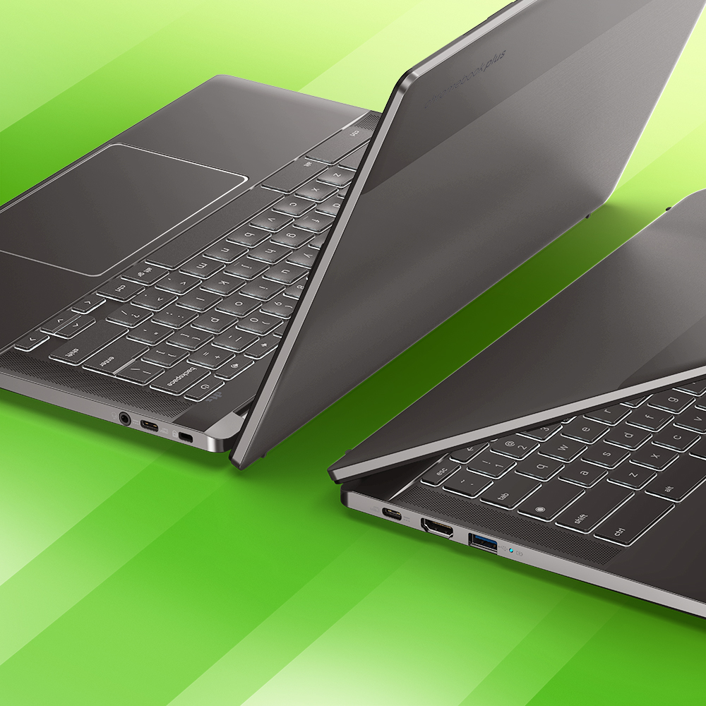 Gjør mer med Chromebook Plus. Dobbelt hastighet. Dobbelt minne. Dobbelt lagringsplass. Pluss AI-drevne Google-funksjoner slik at du kan gjøre mer av det du liker å gjøre.