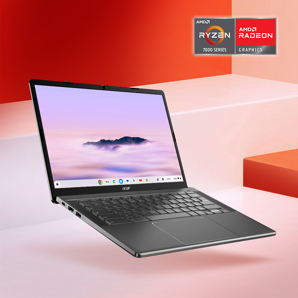 Med en AMD Ryzen™ 3 7320C-prosessor og en stor 14-tommers 16:9 FHD-skjerm (1920 x 1080) er Acer Chromebook Plus 514 designet for å øke produktiviteten din. Og med 8 GB LPDDR5X-minne og 128 GB eMMC-lagring – pluss populære apper – har du muligheten til å gjøre mer.