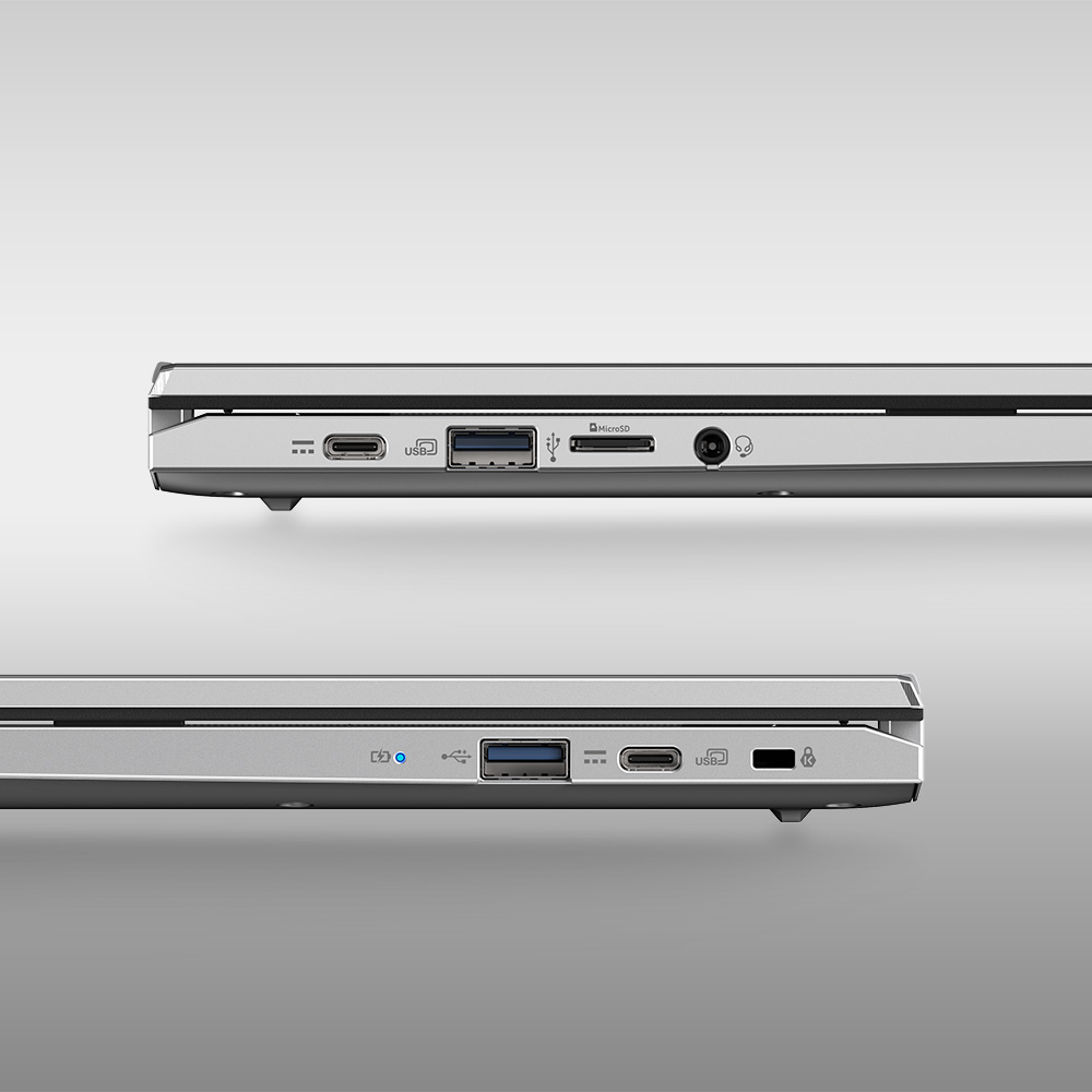 Hold deg synkronisert og tilkoblet. Med to fullfunksjons USB 3.2 Gen 1 Type-C-porter, to USB 3.2 Gen 1 Type-A-porter, en MicroSD-kortleser og Wi-Fi 6E med Bluetooth 5.1, kan du enkelt koble til flere enheter samtidig.