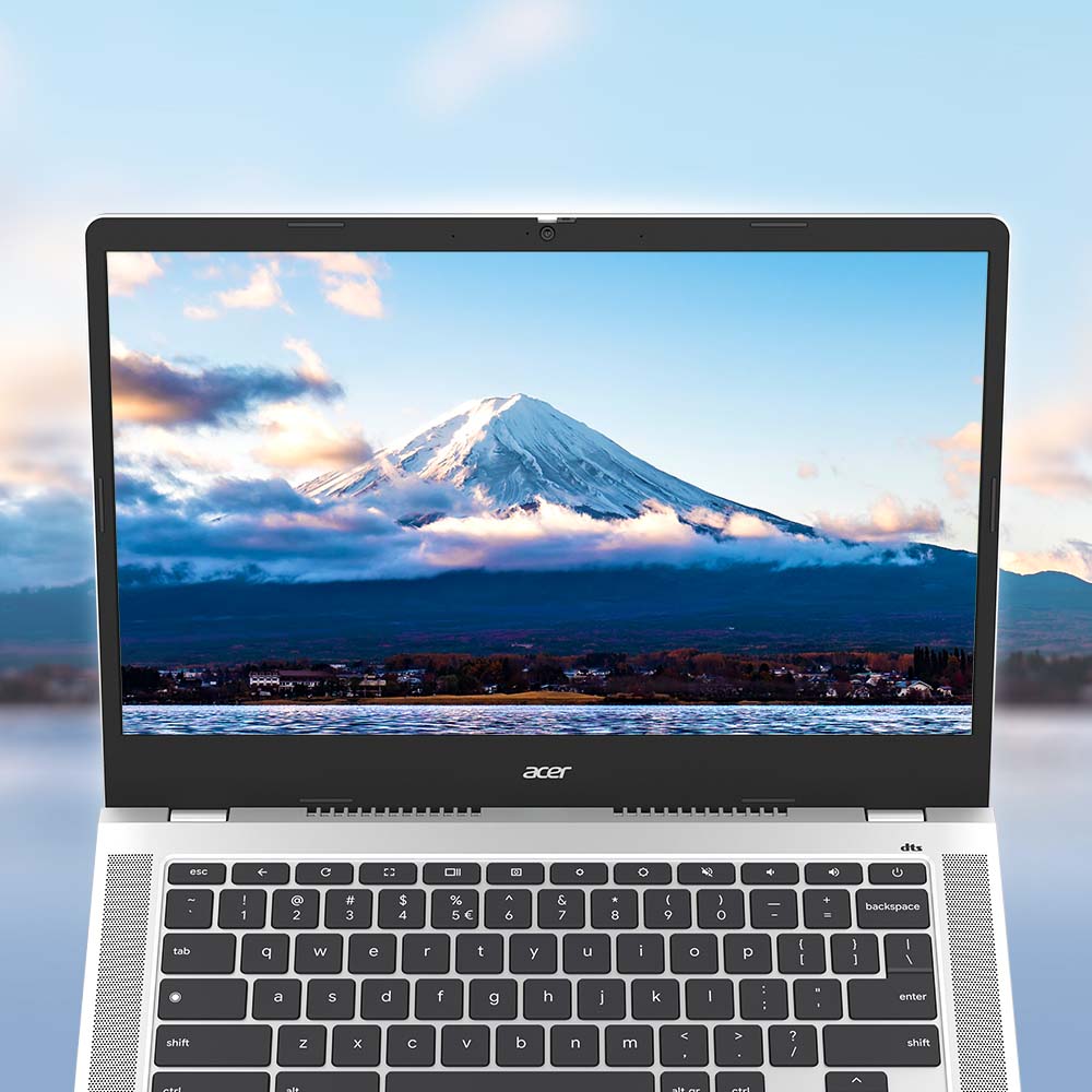 Denne Chromebooken har en stor 14-tommers skjerm med smal ramme, FHD-oppløsning og et antirefleksbelegg, slik at brukerne kan holde seg produktive selv i lyse omgivelser.