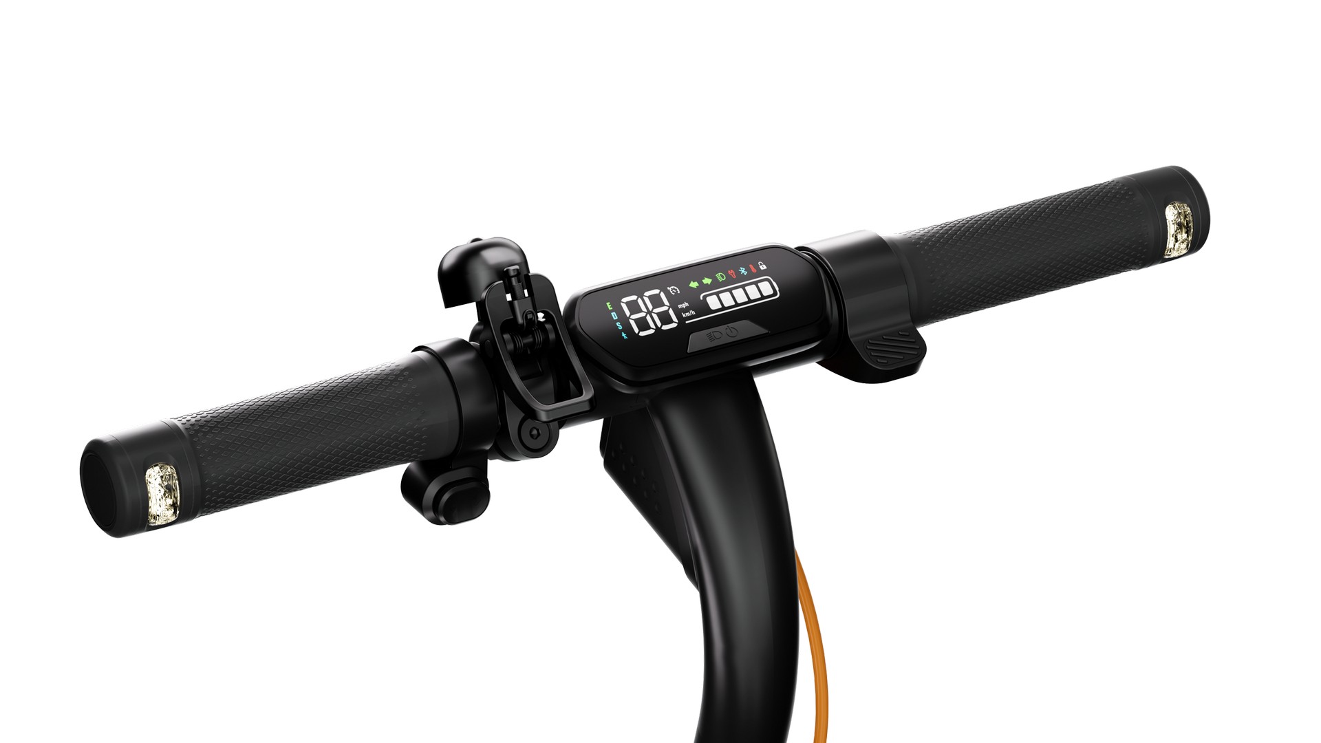eKickScooter har en ett-trinns sammenleggbar mekanisme for maksimal bekvemmelighet. Dette gjør det enkelt å transportere i heiser og offentlig transport, kompakt lagring på arbeidsplassen eller hjemme, og effektiv plassering i bilens bagasjerom.