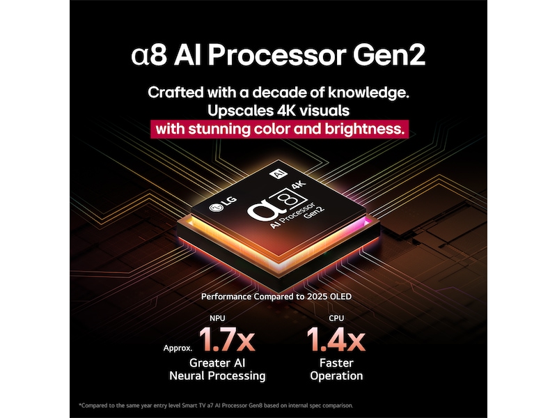 | Egenskaper | AI Genre Selection, Quick Access, Freesync, AI Brightness Control, Støtte for Apple AirPlay 2, Voice ID, AI Chatbot, 4K High Frame Rate (HFR), Støtte for USB-nettkamera, Smarttelefon fjernstyrt, Always Ready |