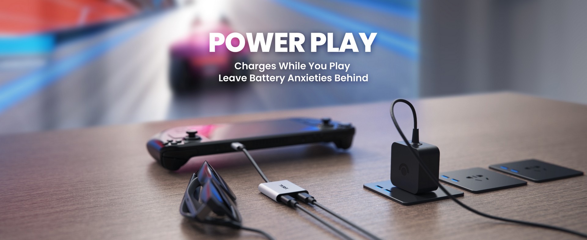 Gi strøm til spilløktene og strømmingen mens du bruker XREAL AR-briller. Lad opp